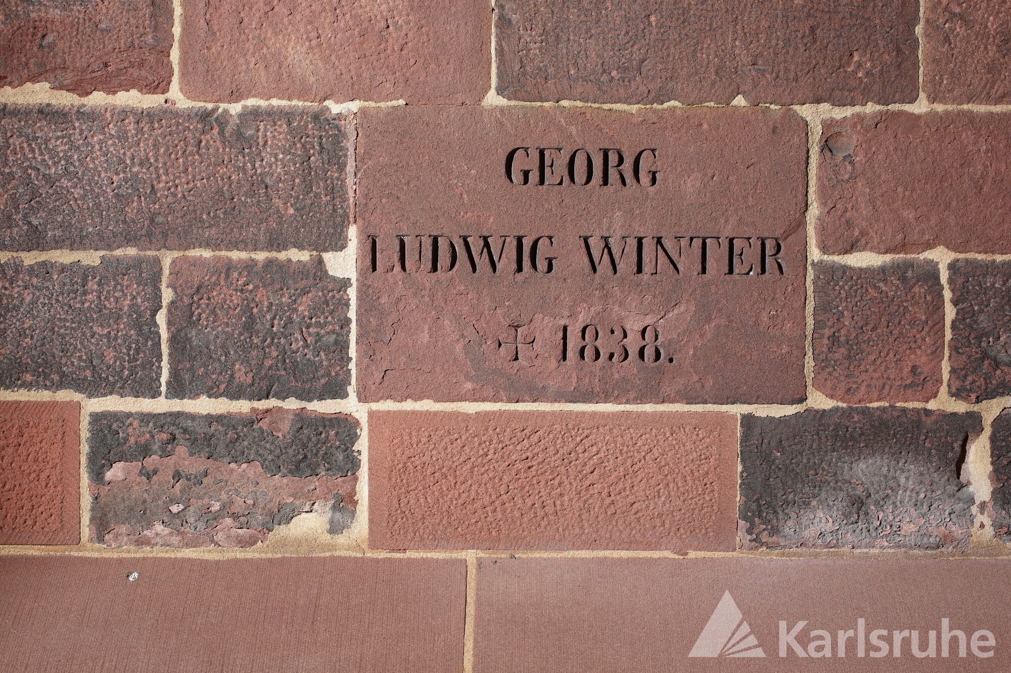 Ludwig Georg Winter (18. Januar 1778 - 27. März 1838) wurde im Prechtal im Schwarzwald geboren. Er war mit Friederike Ernestine Henriette geb. Maler (1786-1858) verheiratet. Der Sohn eines Pfarrers machte als Beamter im badischen Staatsdienst Karriere, er wurde 1831 Innenminister und führte seit 1833 als Staatsminister das Kabinett. Er setzte sich vor allem für den Eisenbahnbau in Baden, den Beitritt zum Zollverein und eine neue Gemeindeordnung ein. Ihm zu Ehren wurde ein Denkmal beim Alten Bahnhof errichtet, das sich heute nach seiner Versetzung in der Nähe des Albtalbahnhofs befindet. Winter wurde in der Gruft unter der Apsis der Friedhofskapelle begraben, die von der Stadt Karlsruhe gekauft worden war.