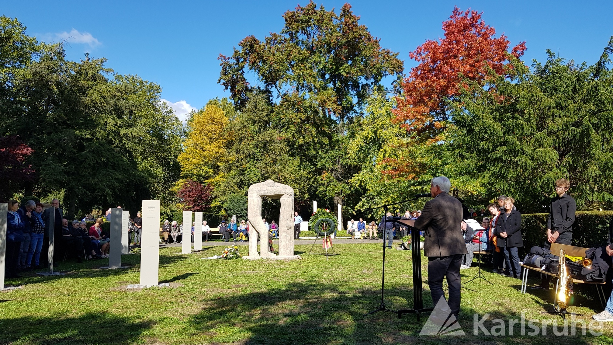 Ein erster Ort der Erinnerung an Opfer des Nationalsozialismus entstand in Karlsruhe Mitte 1945, als ein in Karlsruhe stationierter sowjetischer Offizier ein Gedenkkreuz errichten ließ. Es steht beim Ehrengräberfeld für sowjetische Opfer auf dem Jüdischen Friedhof beim Hauptfriedhof. Im folgenden Jahr wurden mehrere Straßen nach Karlsruher Opfern benannt.