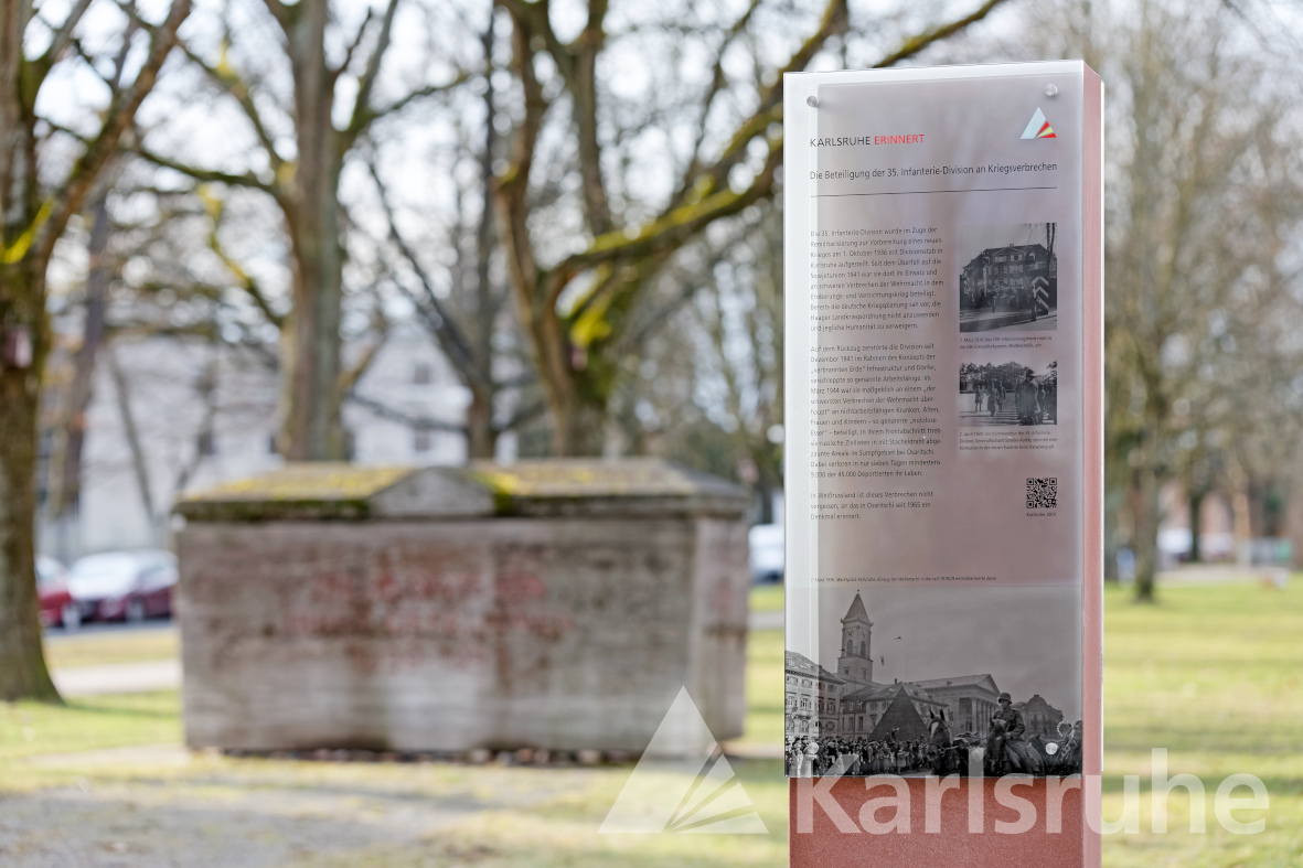 Auf dem Gräberfeld wurden ab 1941 sowjetische Zwangsarbeiter und Kriegsgefangene beigesetzt, darunter mindestens 20 Personen, die im Arbeitserziehungslager in Karlsruhe umgekommen sind oder ermordet wurden. Neben diesen Einzelgräbern wurden nach dem Luftangriff vom 9. August 1944 in einem Sammelgrab ausländische Gefangene und deutsche Begleitmannschaften eines Eisenbahntransports beerdigt.