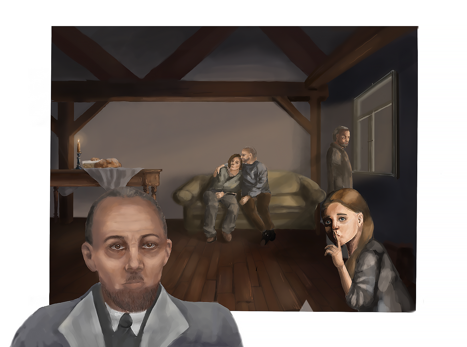 Das Gemälde soll die Szene darstellen, wie Caemmerer jüdische Mitbürger, die vor dem NS-Regime fliehen mussten, in seiner Gartenhütte aufgenommen und versorgt hat. Es soll die Ängste und Gefahren vermitteln, unter denen die Juden lebten, und gleichzeitig verdeutlichen, dass auch Caemmerer durch sein Handeln sein Leben und das seiner Familie aufs Spiel setzte.