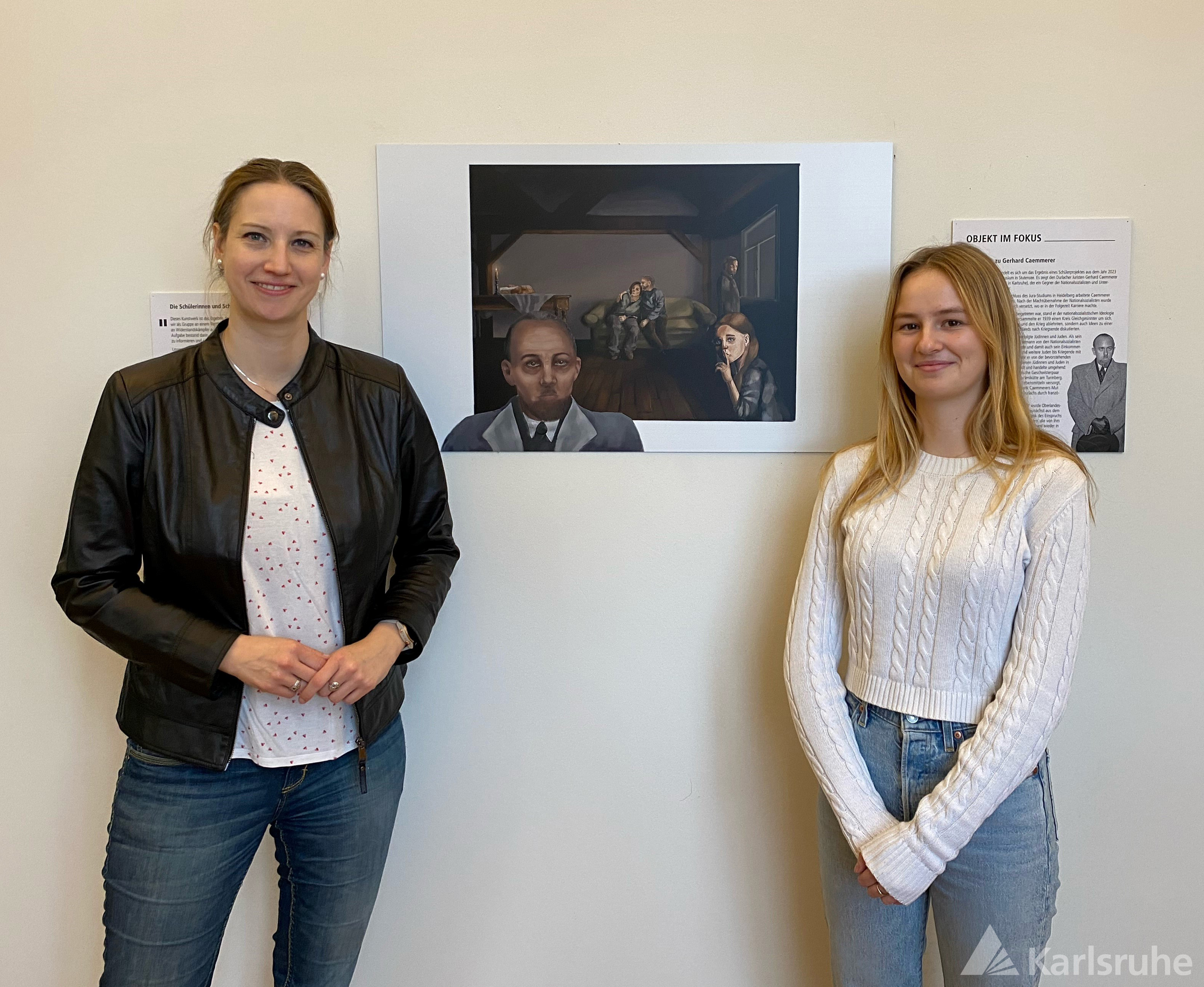 „Dieses Kunstwerk ist das Ergebnis des Seminarkurses an unserer Schule, bei dem wir als Gruppe an einem Wettbewerb teilgenommen haben, der dem Gedenken an Widerstandskämpfer aus der Zeit des Dritten Reichs gewidmet war. Unsere Aufgabe bestand darin, einen Widerstandskämpfer auszuwählen, uns über ihn zu informieren und ein zeitgemäßes Kunstwerk zu schaffen, das an ihn erinnert. Unsere Gruppe, bestehend aus Frida, Ben, Viktor, Dominik und Finja, hat sich für Gerhard Caemmerer entschieden, einen Widerstandskämpfer aus Durlach, der Juden in seiner Gartenhütte versteckt, versorgt und ihnen geholfen hat.