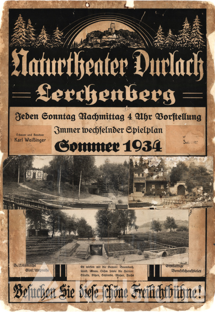 In den Jahren zwischen dem Ersten und dem Zweiten Weltkrieg befand sich in Durlach eine der größten und bekanntesten Freilichtbühnen Badens - das Naturtheater Lerchenberg. In den Sommermonaten wurden hier in Sichtweite des Turmbergs unter freiem Himmel Volksstücke, Lustspiele und Operetten aufgeführt.