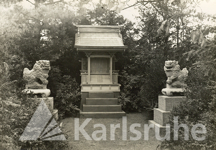 Die Entstehungsgeschichte des japanischen Gartens in Karlsruhe ist heute nicht mehr genau rekonstruierbar, aber vermutlich im Zeitraum 1913/14 anzusiedeln. Damit ist er einer der ältesten Deutschlands. Die damalige Gartenanlage veränderte sich im Laufe der Zeit mehrfach und wurde immer wieder durch Schenkungen aus Japan ergänzt, so auch 1927 durch einen Schinto-Schrein mit zwei so genannten Komainu (Schutzlöwen) und einem Torii (Torbogen). Angeregt und maßgeblich in die Wege geleitet wurde diese Schenkung durch den gebürtigen Karlsruher Prof. Dr. Siegfried Gräff, der zuvor zwei Jahre in Japan gelebt und gearbeitet hatte.