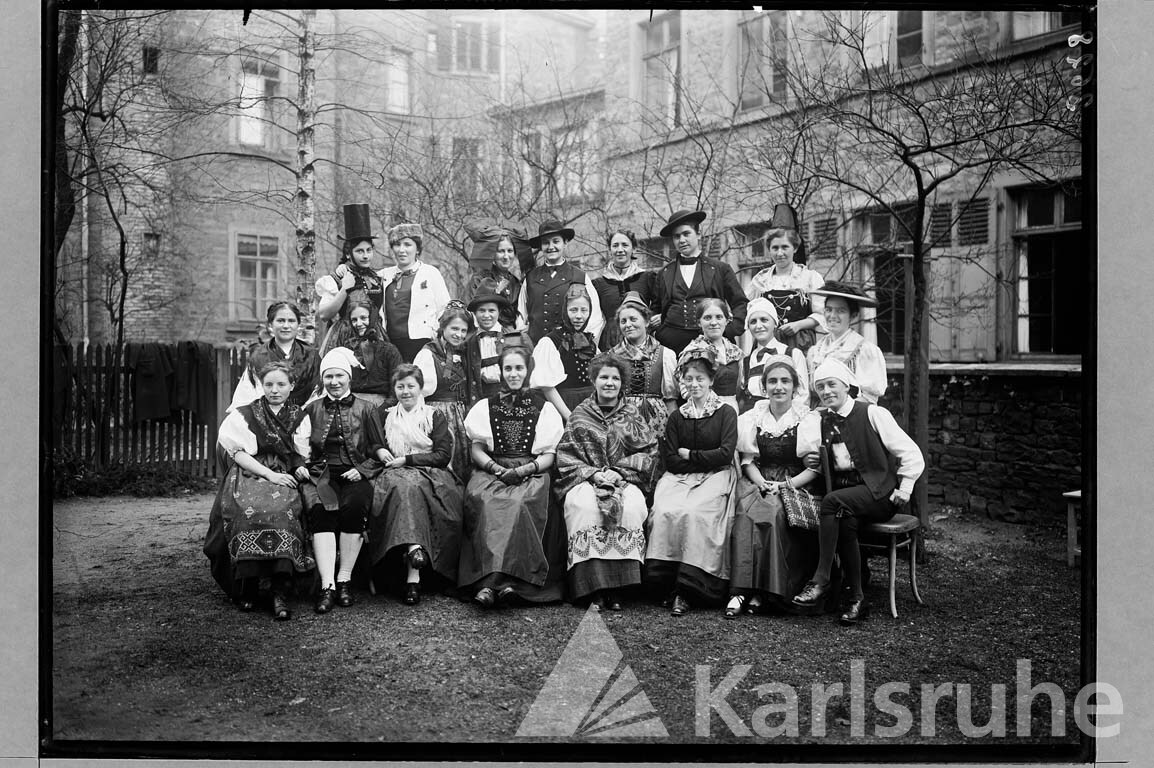 Unter den Portraitaufnahmen befinden sich auch einige prominente Persönlichkeiten, wie der badische Minister Adam Remmele oder der ehemalige Staatspräsident von Baden und spätere baden-württembergische Finanzminister Heinrich Köhler. Zeugnis und geschichtlichen Überblick von und über Karlsruher Institutionen und Vereinigungen geben die Gruppenaufnahmen, die ebenfalls einen großen Teil des Bestandes einnehmen. Darunter befinden sich Gruppenfotos von unterschiedlichen Sportmannschaften oder Schulen, wie zum Beispiel ein Gruppenfoto von Schülerinnen der Frauenarbeitsschule, die vermutlich von ihnen gefertigte Trachten und Kostüme tragen.