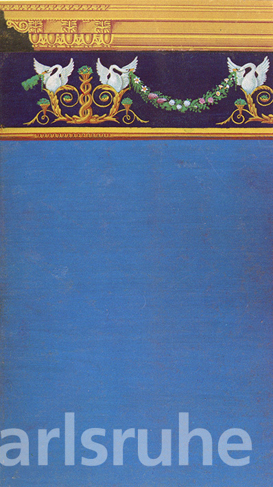 Im Gegensatz zu der festgeschriebenen Regel Weinbrenners für das Bemalen von Fassaden, kein Weiß und nur gebrochene Farben zu wählen, bevorzugte man in dieser Zeit für den Zimmerschmuck überwiegend satte Farben. Lankheit stellte hierfür beispielhaft zwei Dekorationsmuster (1828) für Zimmer im Lusthaus der Markgräfin Christiane Louise, der Ehefrau des 1817 verstorbenen Markgrafen Friedrich, vor. Das eine zeigte eine Wand in warmem Rot mit einem abschließenden goldgelben Zierband, das andere schlug ein tief leuchtendes Blau vor.