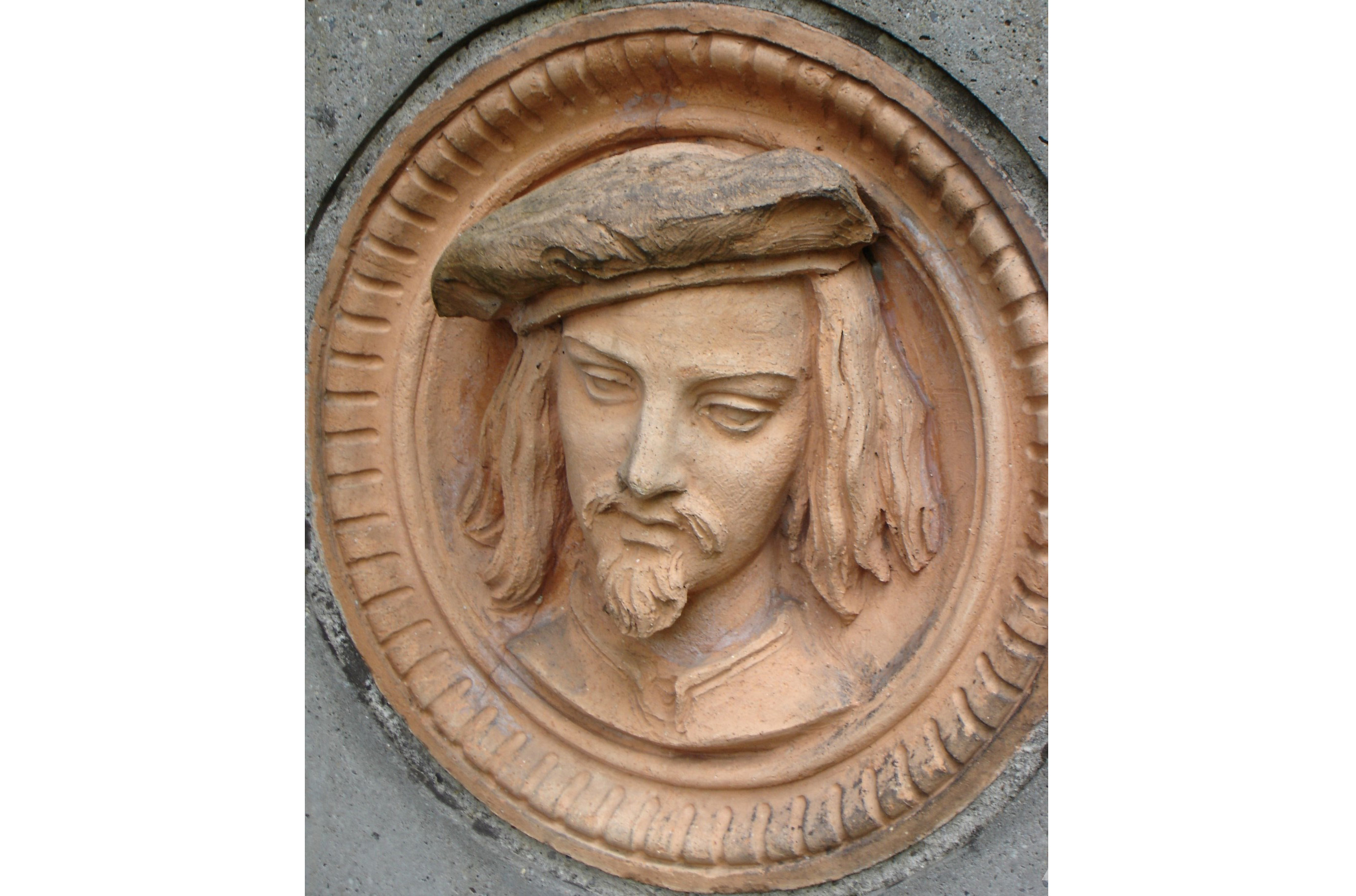 Freunde des Botanischen Gartens werden beim Anblick der hier abgebildeten fünf Terrakotta-Medaillons denken, die kenne ich doch. Tatsächlich sind dort in einer Sandsteinmauer nahe dem ehemaligen Mühlburger Tor, durch das man in den Schlossgarten gelangt, acht ähnliche Medaillons angebracht. Wer aber die Originale der fünf betrachten will, wird nicht im Botanischen Garten, sondern in Bad Dürrheim fündig.